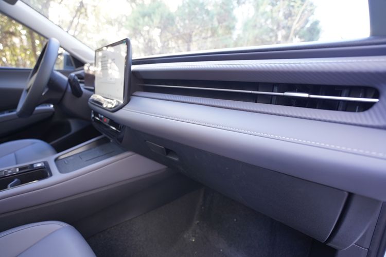 前部的空调出风口采用贯通式,上部嵌有一条灯带——该车配备30色氛围灯。