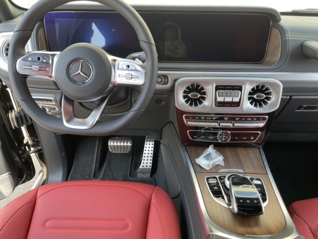 25款奔驰G400d 原码上牌无忧,无豪车税。 颜色:熊猫版 水泥灰/红色菱形格配置:红色菱形格座椅!主动多轮廓座椅(带通风按摩),AMG包,暗夜包,驾驶员辅助包plus(acc自适应巡航),技术包(360环车影像),柏林之声音响!现车手续齐。