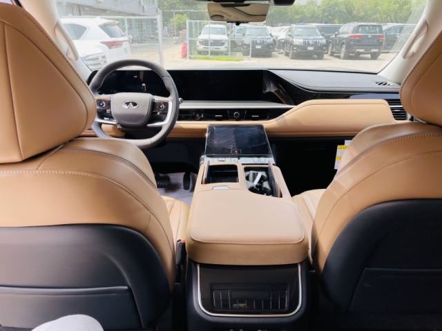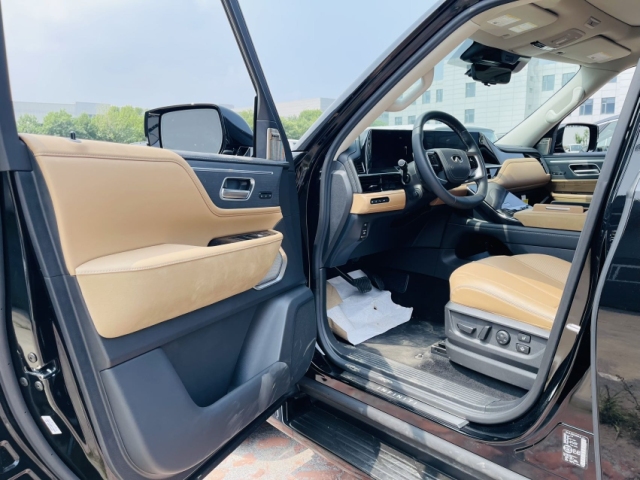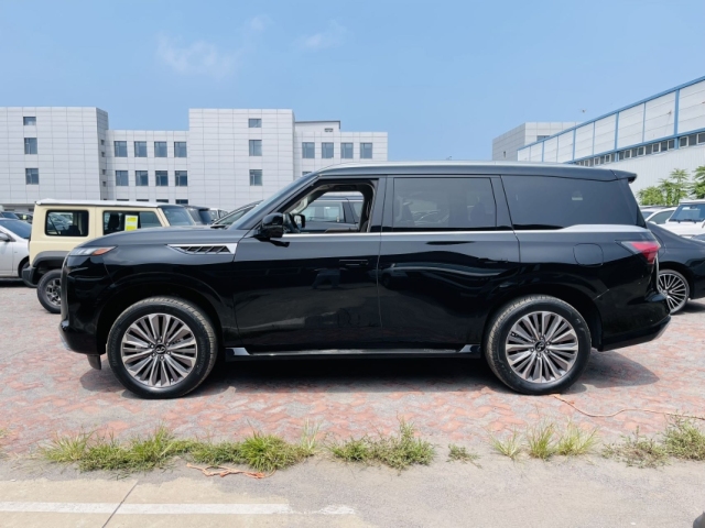 QX80 Sport 版本取代了原先的 Sensory 配置,其设计理念深受 QX60 Sport 的影响。黑色外观套件、重新设计的前格栅以及独特的前保险杠,尤其是下部通风口下方的小型前唇,赋予了新车更加动感的外观。车身侧面,熏黑的 A、B、C 柱、后视镜以及车顶设计,有效减轻了庞大车身带来的笨重感,而 22 英寸熏黑多辐轮圈则进一步提升了车辆的豪华气息。