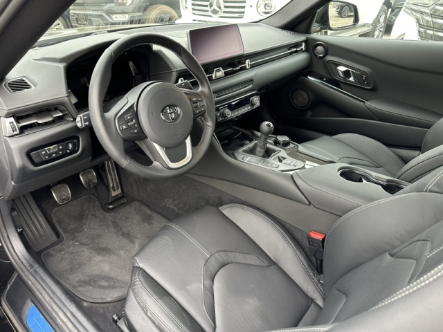 2026款A91 手动挡 GR Supra A91版本 高功率382马力 带电调避震 六速手动挡 长4.38 宽1.85 高1.29 胎压监测,倒车影像,防碰撞预警,并线辅助,自动远光灯,carplay系统, JBL音响,52升油箱,红色brembo卡钳,弹射起步,AVS自适应悬挂, 主动后差速器,座椅加热,座椅记忆,14项调节,真皮座椅 碳纤维内饰,抬头显示,自动雨刷 关于A91 GR Supra的性能提升 通过丰田官方文件得知 A91 加入手动挡车型 马力由335提升至382 增加带电磁阀的可调阻尼减震AVS 重新调教的带全新部件的电子助力转向 主动运动型后桥差速器 等 24款新增发夹弯扭矩控制 价格79.8万 带Street hunter 尾翼备案 带45周年纪念版尾翼备案