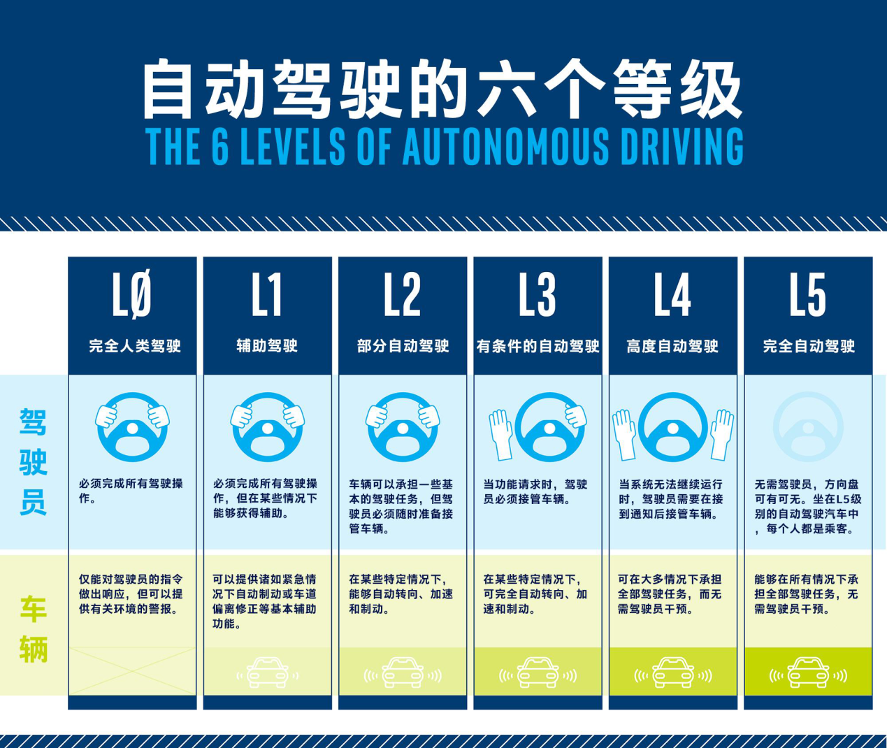 我们先看一下自动驾驶六个等级划分,L2和L3的功能实现其实就差在几个字上面,比如对L2的描述是:“在某些特定情况下,能够自动转向、加速和制动。”那么L3的差异化就在于:“在某些特定情况下,可完全自动转向、加速和制动。”